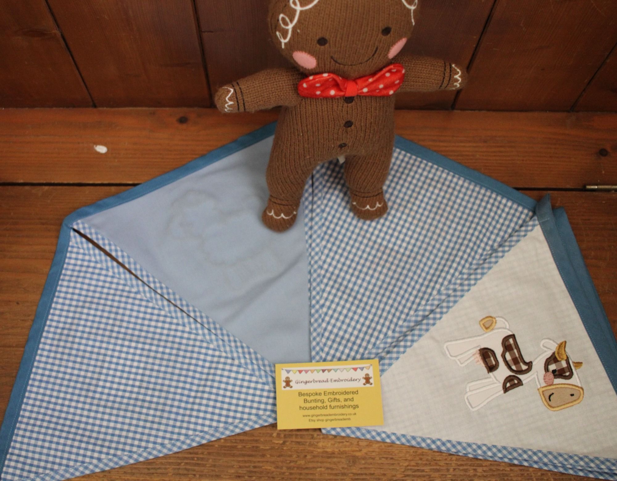 This Fabulous handmade co-ordinated Nursery/Bedroom set was inspired from a trip to the farm. Each farmyard animal is stitched in cute gingham and polka dot cotton material which brings the animals to life. Ideal for your trainee little farmer. Comes complete with a free Gift Bag which can be personalised.