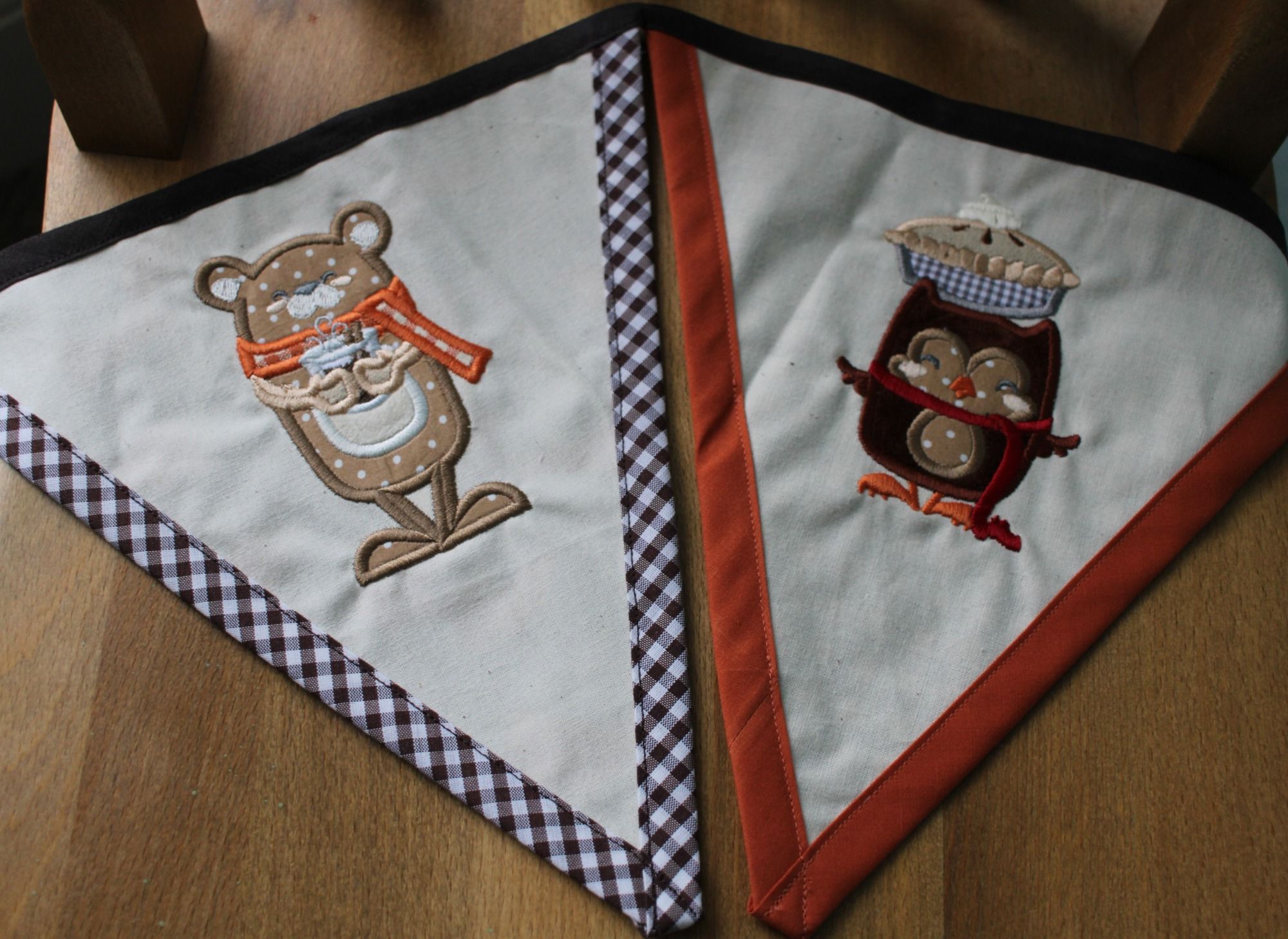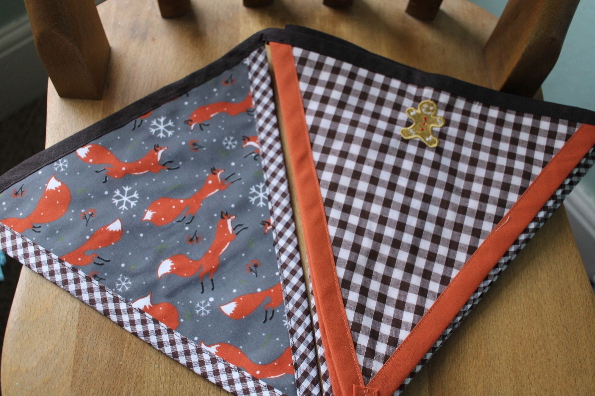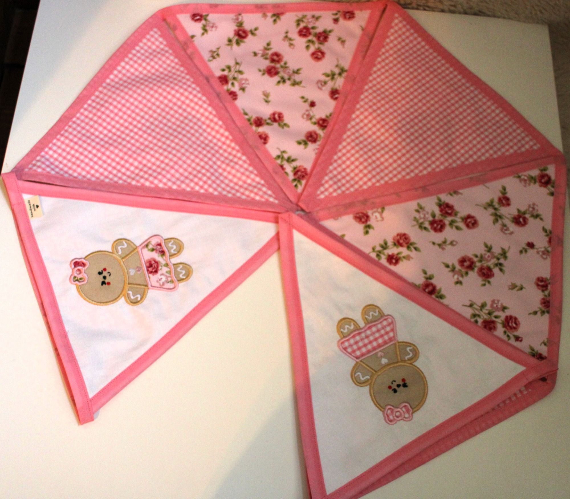 The Appliqued letters alternate between gorgeous floral and Gingham Cotton and the gingerbread person wraps itself around the letter.