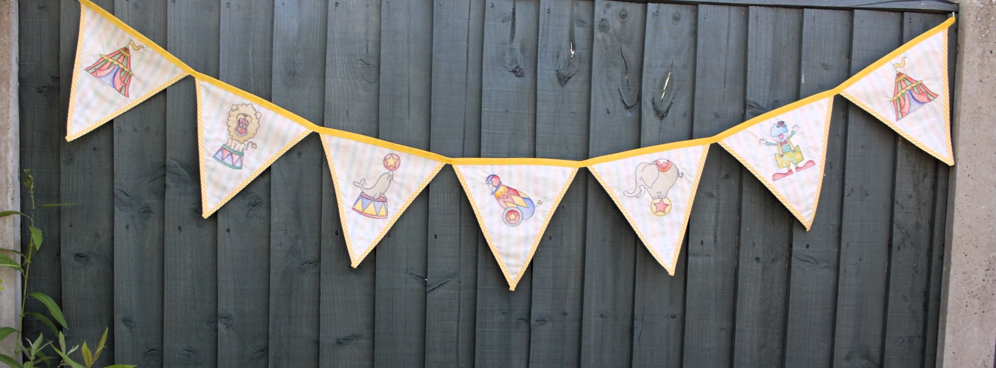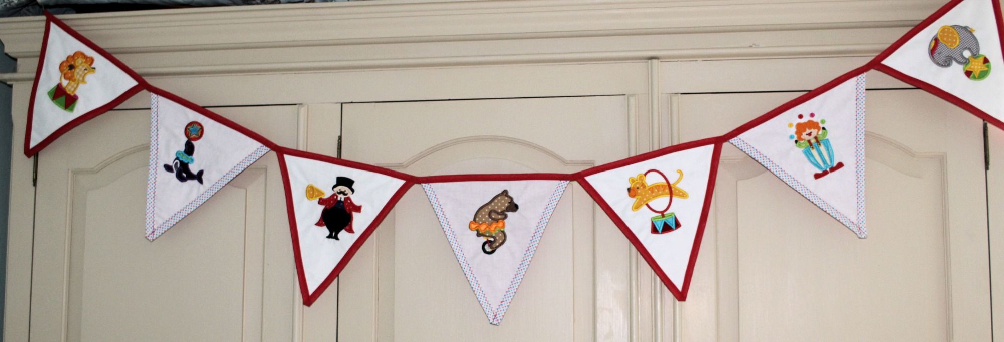 Roll Up Roll Up Come to the greatest show Performing Seals, Lions, Elephants and canon fired Clowns Jump out of this stunning Embroidered Bunting !!